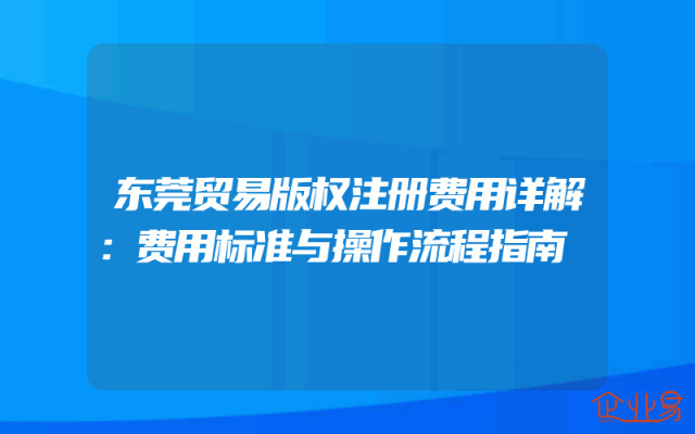 - 东莞贸易版权注册费用:费用标准与操作流程指南