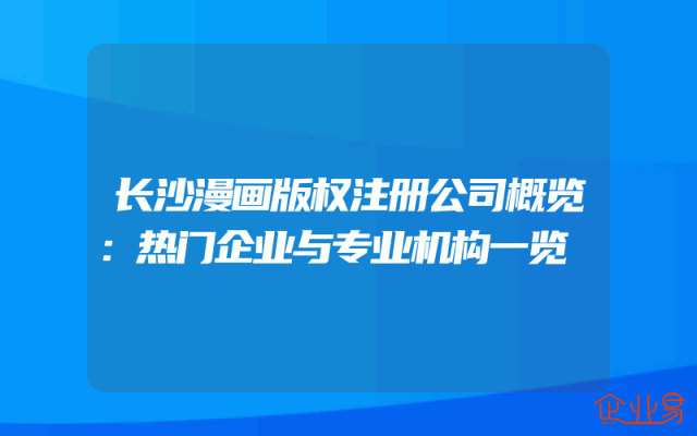 - 长沙漫画版权注册公司概览:热门企业与专业机构一览