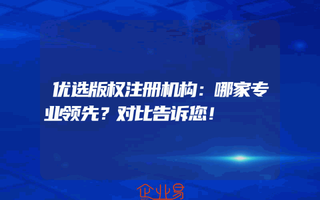 - 优选版权注册机构:哪家专业领先?对比告诉您!