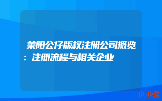 - 莱阳公仔版权注册公司概览:注册流程与相关企业