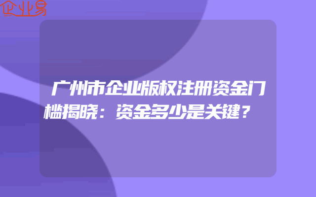 - 广州市企业版权注册资金门槛揭晓:资金多少是关键?