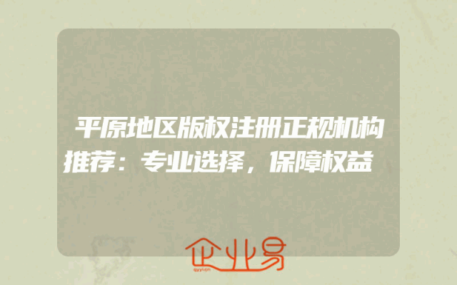 - 平原地区版权注册正规机构推荐:专业选择,保障权益