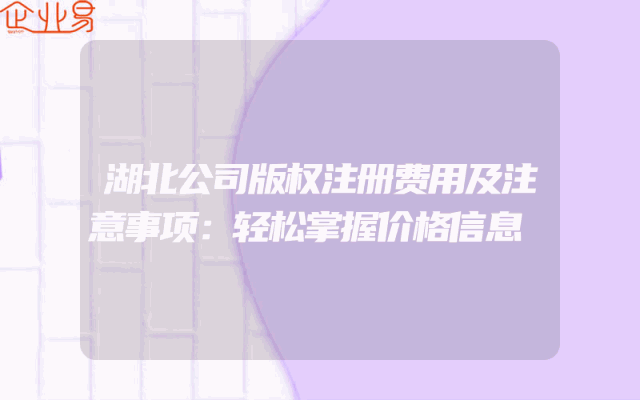- 湖北公司版权注册费用及注意事项:轻松掌握价格信息