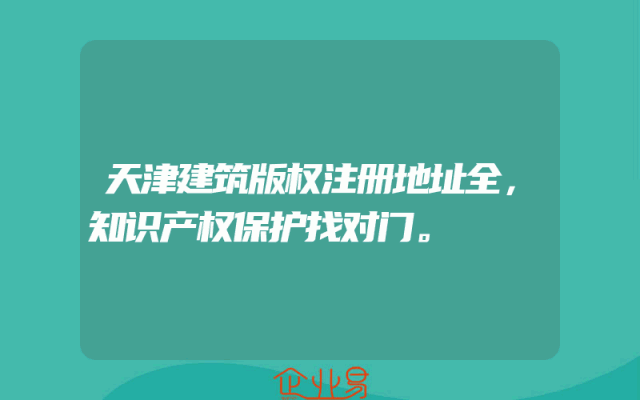 - 天津建筑版权注册地址全,知识产权保护找对门。