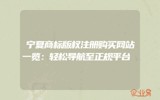 - 宁夏商标版权注册购买网站一览:轻松导航至正规平台