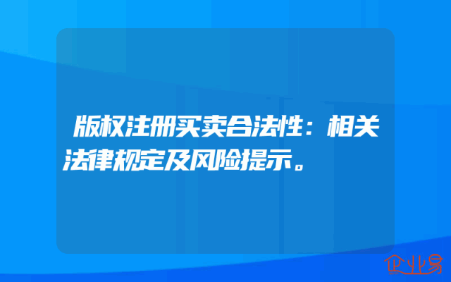 - 版权注册买卖合法性:相关法律规定及风险提示。
