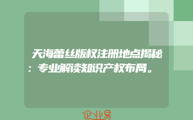 - 天海蕾丝版权注册地点揭秘:专业解读知识产权布局。