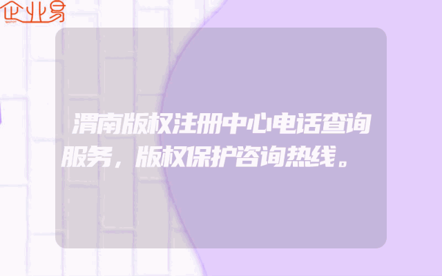 - 渭南版权注册中心电话查询服务,版权保护咨询热线。