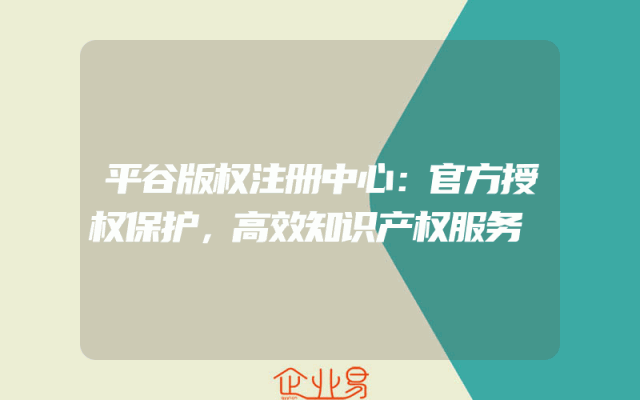 - 平谷版权注册中心:官方授权保护,高效知识产权服务