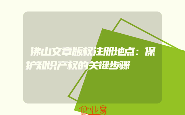 - 佛山文章版权注册地点:保护知识产权的关键步骤