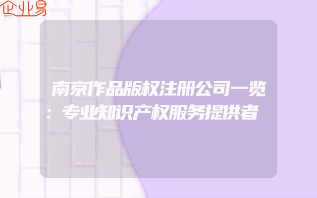 - 南京作品版权注册公司一览:专业知识产权服务提供者