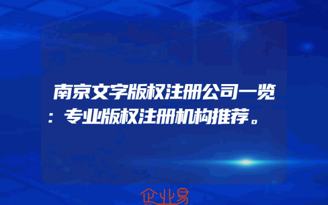 - 南京文字版权注册公司一览:专业版权注册机构推荐。