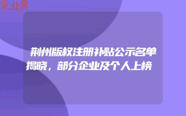 - 荆州版权注册补贴公示名单揭晓,部分企业及个人上榜