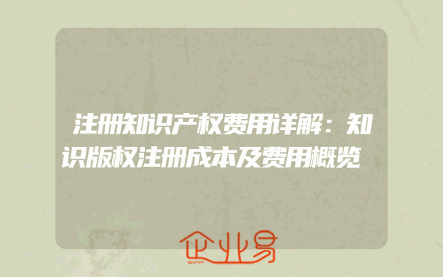 - 注册知识产权费用详解:知识版权注册成本及费用概览