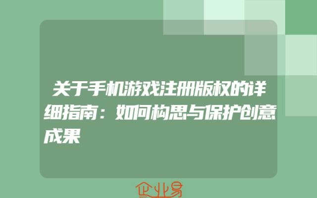 - 关于手机游戏注册版权的详细指南:如何构思与保护创意成果