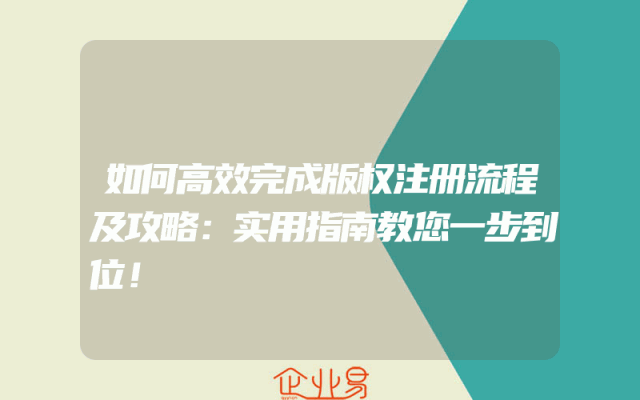 - 如何高效完成版权注册流程及攻略:实用指南教您一步到位!