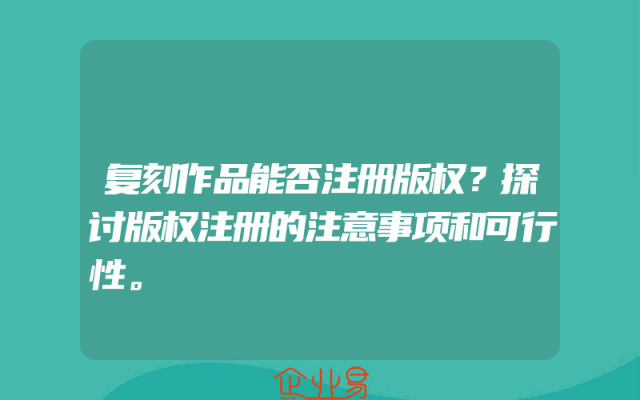 - 复刻作品能否注册版权?探讨版权注册的注意事项和可行性。