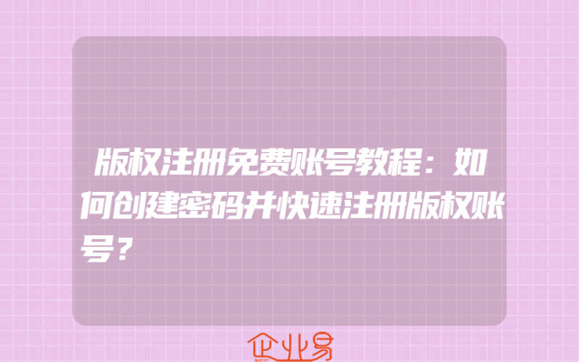 - 版权注册免费账号教程:如何创建密码并快速注册版权账号?