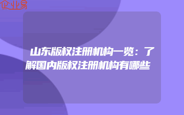 - 山东版权注册机构一览:了解国内版权注册机构有哪些
