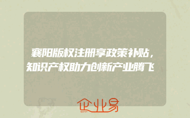 - 襄阳版权注册享政策补贴,知识产权助力创新产业腾飞