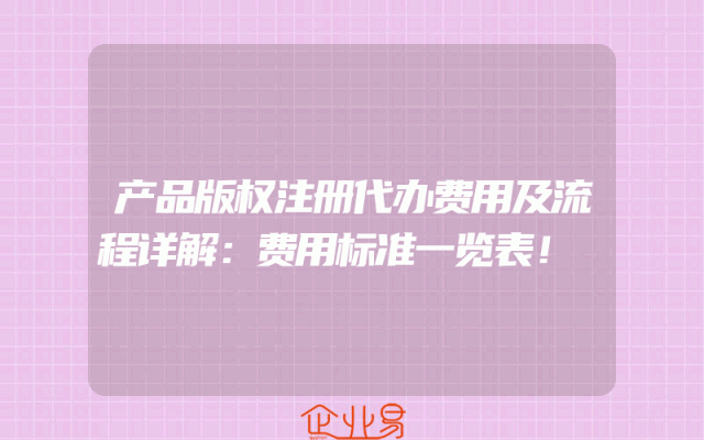 - 产品版权注册代办费用及流程详解:费用标准一览表!