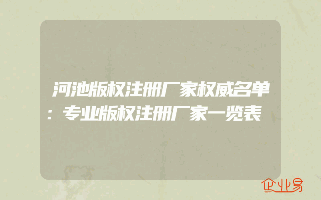 - 河池版权注册厂家权威名单:专业版权注册厂家一览表
