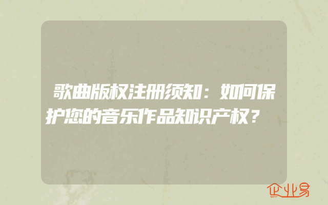 - 歌曲版权注册须知:如何保护您的音乐作品知识产权?