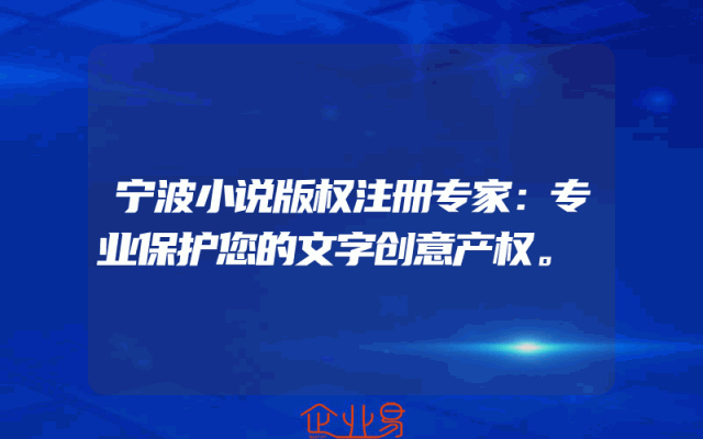 - 宁波小说版权注册专家:专业保护您的文字创意产权。