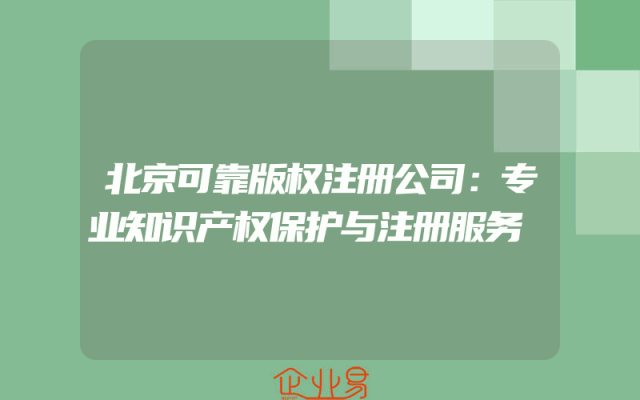- 北京可靠版权注册公司:专业知识产权保护与注册服务
