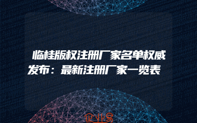 - 临桂版权注册厂家名单权威发布:最新注册厂家一览表
