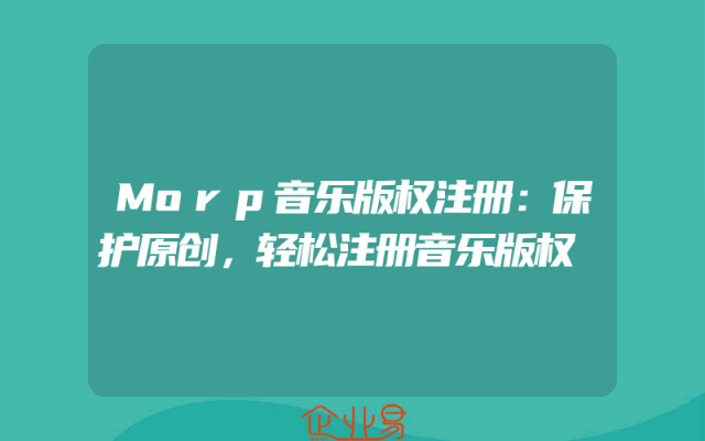 - Morp音乐版权注册:保护原创,轻松注册音乐版权随着数字技术的不断发展,音乐行业面临着日益严重的版权挑战。在这样的大背景下,如何保护原创音乐作品成为众多音乐人关注的焦点问题。注册音乐版权作为解决这一问