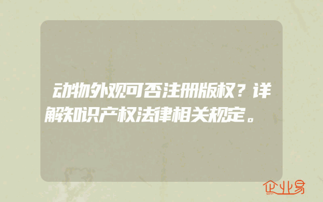 - 动物外观可否注册版权?详解知识产权法律相关规定。