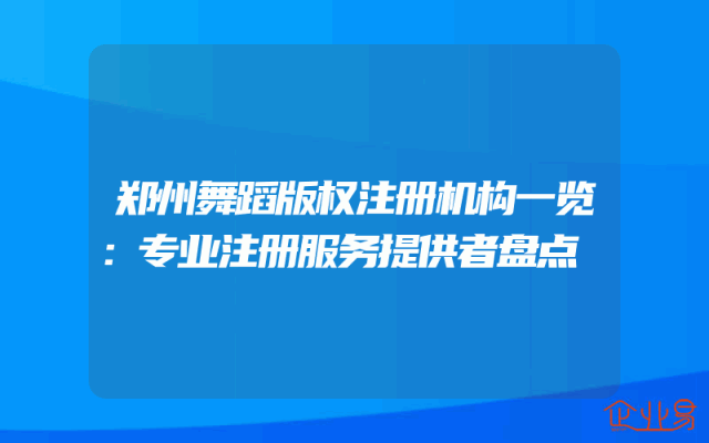 - 郑州舞蹈版权注册机构一览:专业注册服务提供者盘点