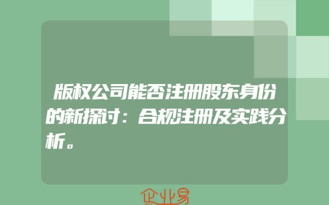 - 版权公司能否注册股东身份的新探讨:合规注册及实践分析。