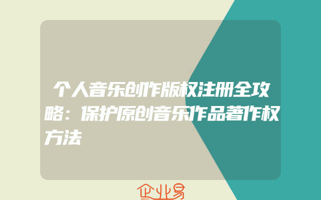 - 个人音乐创作版权注册全攻略:保护原创音乐作品著作权方法