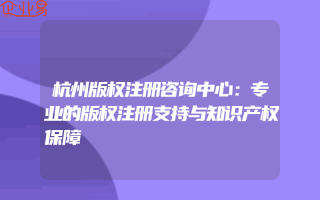 - 杭州版权注册咨询中心:专业的版权注册支持与知识产权保障