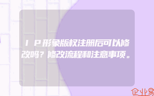 - IP形象版权注册后可以修改吗?修改流程和注意事项。