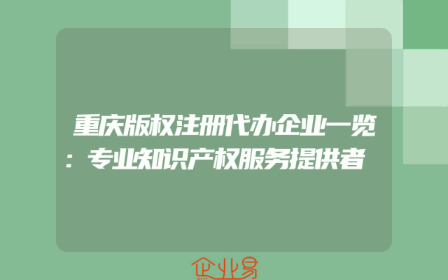 - 重庆版权注册代办企业一览:专业知识产权服务提供者
