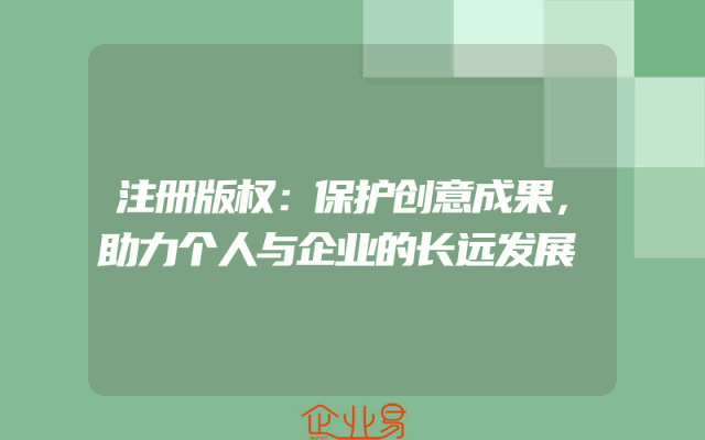 - 注册版权:保护创意成果,助力个人与企业的长远发展