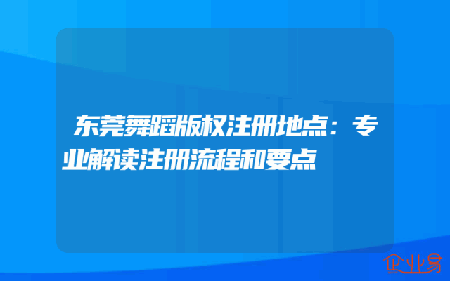 - 东莞舞蹈版权注册地点:专业解读注册流程和要点