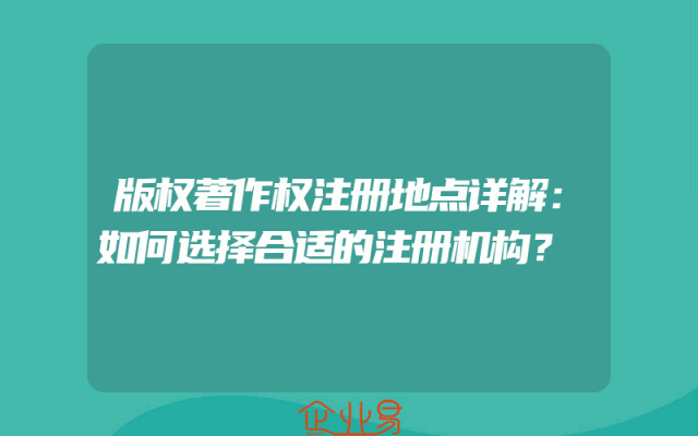 - 版权著作权注册地点详解:如何选择合适的注册机构?
