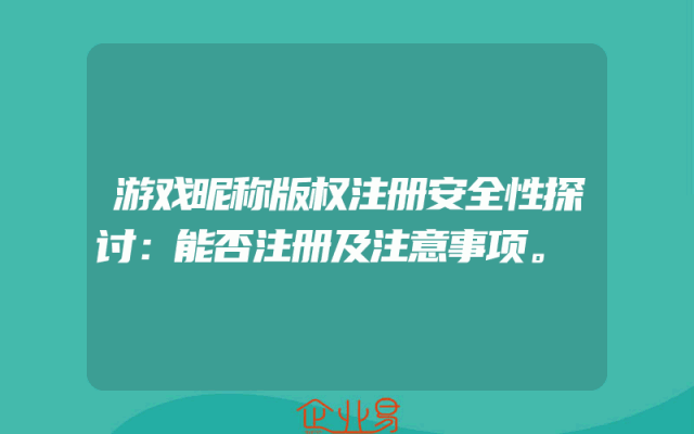 - 游戏昵称版权注册安全性探讨:能否注册及注意事项。