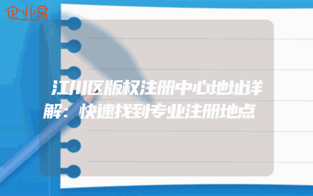- 江川区版权注册中心地址详解:快速找到专业注册地点