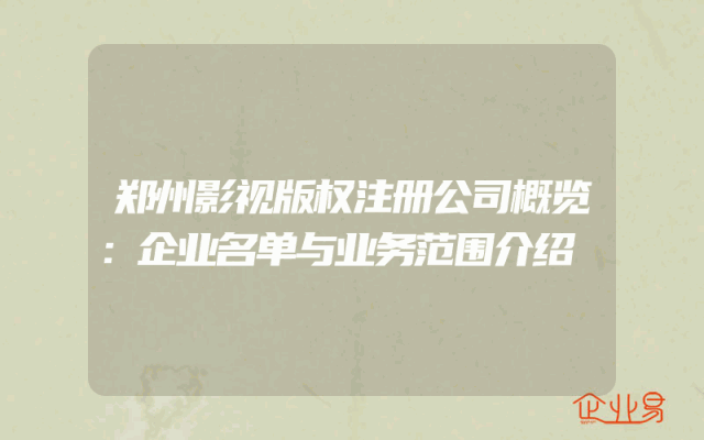- 郑州影视版权注册公司概览:企业名单与业务范围介绍