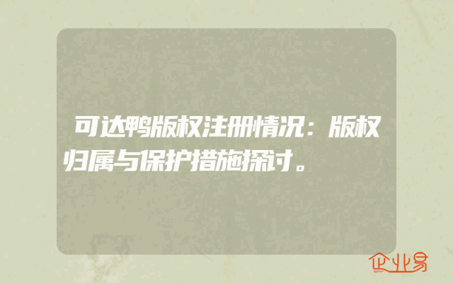 - 可达鸭版权注册情况:版权归属与保护措施探讨。