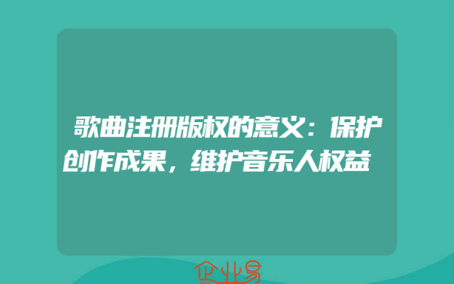 - 歌曲注册版权的意义:保护创作成果,维护音乐人权益