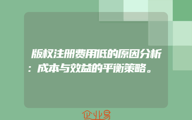 - 版权注册费用低的原因分析:成本与效益的平衡策略。