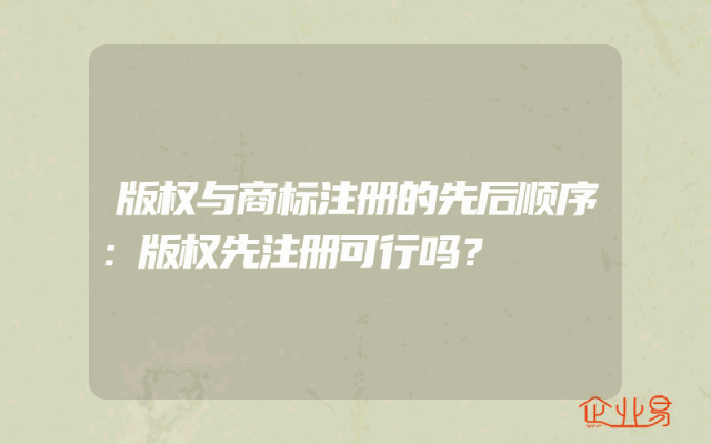 - 版权与商标注册的先后顺序:版权先注册可行吗?
