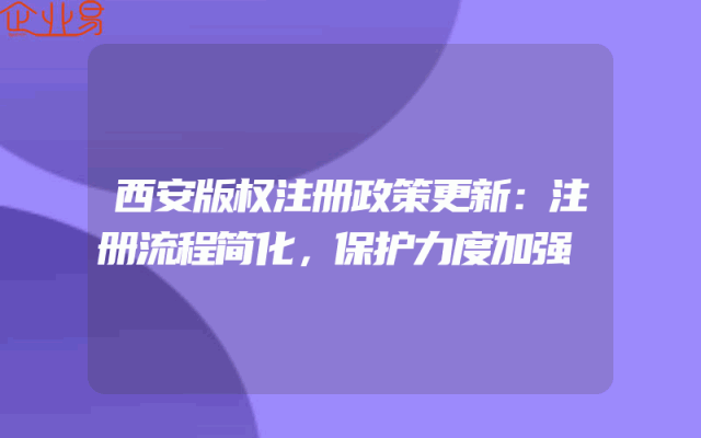 - 西安版权注册政策更新:注册流程简化,保护力度加强