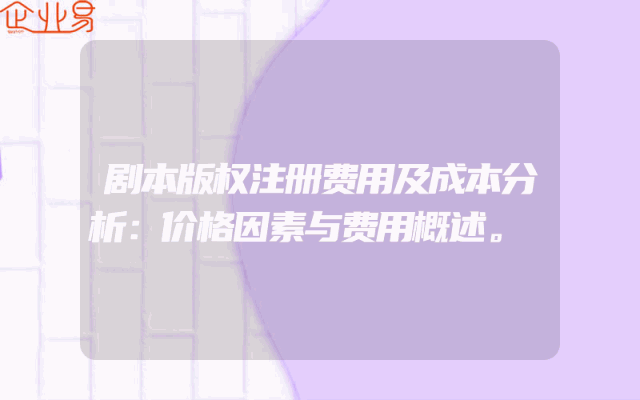 - 剧本版权注册费用及成本分析:价格因素与费用概述。